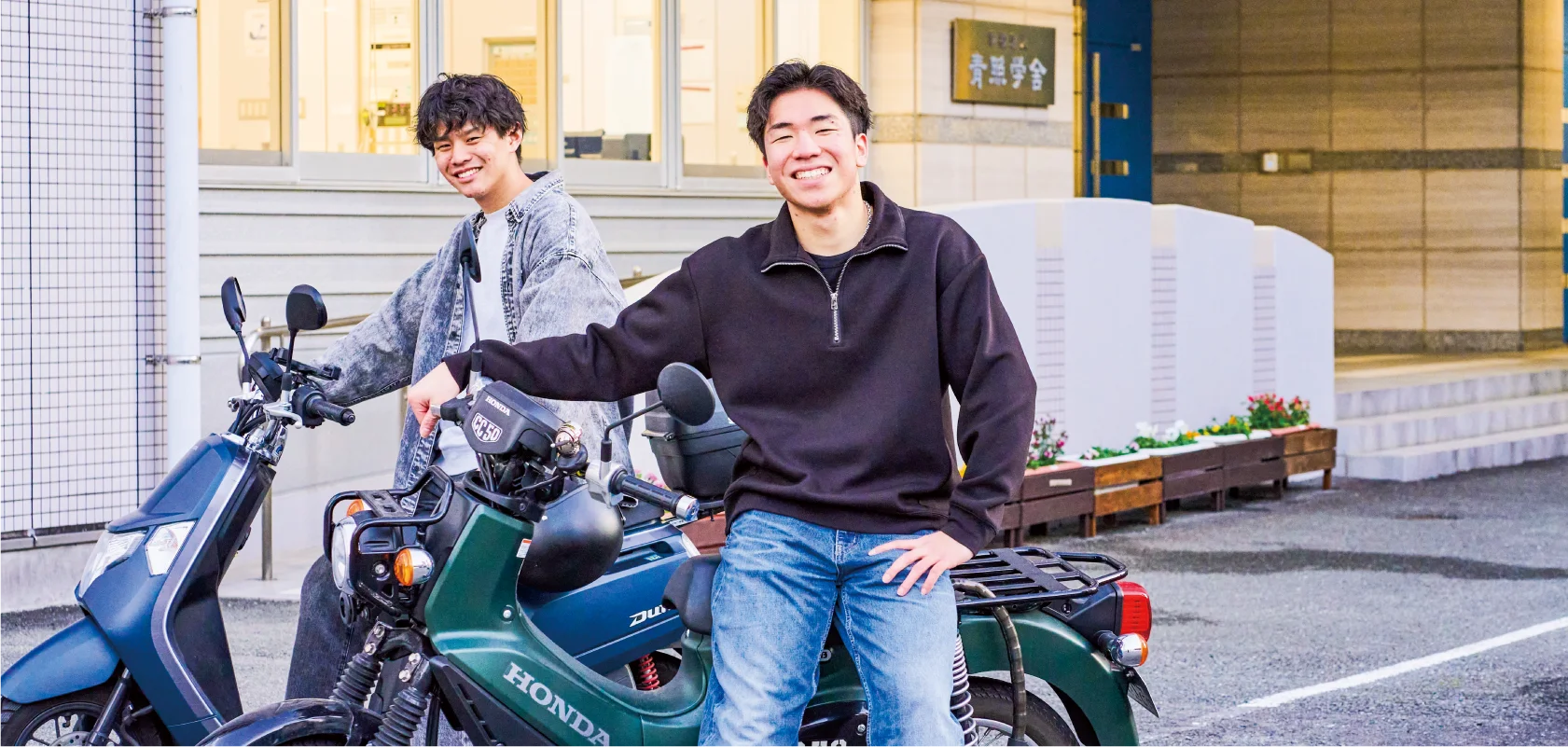 エキガクは他学科の学生との交流が活発で、豊富な看護学習の環境が整っています。通学距離は遠いですが、家族の支えを得られることからバイク通学を選びました。そのおかげで、学校生活が楽しく、学業へのモチベーション向上につながります。