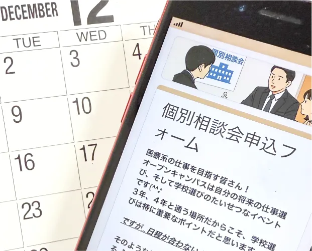 オープンキャンパスでは聞きにくいことも、個別相談なら安心して質問できます。