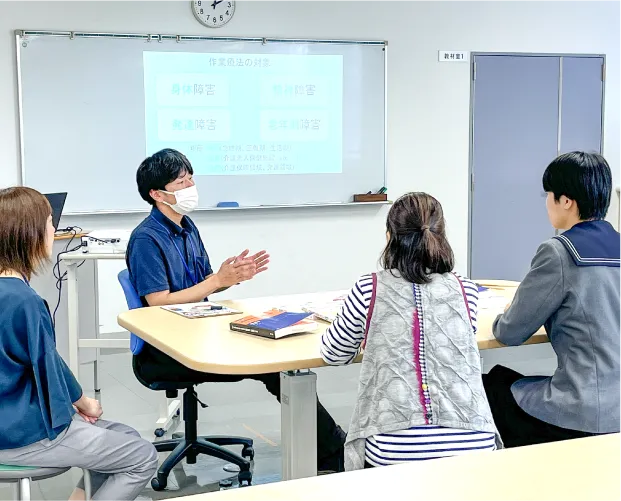 学科の説明や体験を通して、セラピストや看護師の理解が深まり、仕事の魅力ややりがいを感じる機会になります。自分に合う職業を見つけよう!